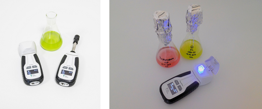 AquaPen AP110手持式藻類熒光測量儀是一款用于快速、精確測量水體藻類與藍(lán)藻葉綠素?zé)晒鈪?shù)的手持式熒光儀。AquaPen有兩種探頭型號(hào)。AP110-C配備比色杯試管測量室,將要測量的水體、懸濁液或培養(yǎng)溶液采集到比色杯中進(jìn)行測量,配備455nm藍(lán)色和620nmLED紅色光源,既可以測量葉綠素?zé)晒?,又可以測量680nm和720nm光密度。AP110-P配備了浸入式光學(xué)探頭,可直接插到要測量的水體、懸濁液或培養(yǎng)溶液中進(jìn)行測量,也可測量大型藻類。