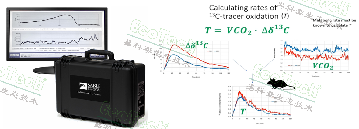 通過代謝示蹤劑(如碳-13標(biāo)記物,就像給生物分子裝上了精確GPS定位器)跟蹤,以及呼吸穩(wěn)定同位素分析儀實(shí)時(shí)監(jiān)測(cè)動(dòng)物呼出氣體中的13CO2來區(qū)分量化動(dòng)物能量代謝中消耗的哪些能量物質(zhì)等,可以更深入的研究代謝生理學(xué)機(jī)制(如代謝靈活性)等,而這種定量測(cè)量特定能量物質(zhì)氧化速率往往也需要知道VCO2。