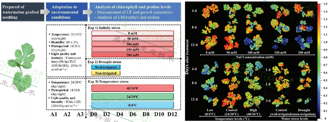 一、 利用葉綠素?zé)晒獬上癖O(jiān)測(cè)嫁接西瓜幼苗的鹽度、溫度和干旱脅迫
