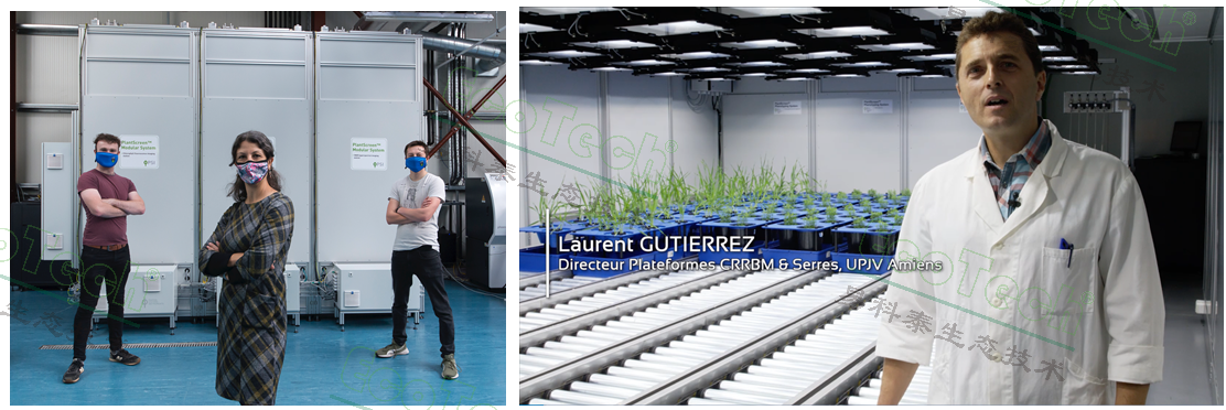 左圖:愛爾蘭都柏林大學(xué)Sónia Negrão教授與學(xué)生合影,身后為2020年新安裝的PlantScreen溫室高通量植物表型成像分析系統(tǒng)前。右圖:法國(guó)亞眠大學(xué)分子生物學(xué)區(qū)域資源中心與溫室平臺(tái)主任Laurent GUTIERREZ接受采訪,向外界介紹該校核心科研平臺(tái)——PlantScreen溫室高通量植物表型成像分析系統(tǒng)。照片中的兩位教授均為此次分享論文的作者之一。