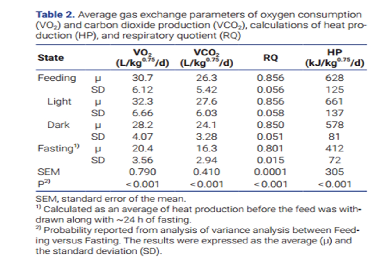 Rony Lizana Riveros, Rosiane de Sousa Camargos, Marcos Macari, Matheus de Paula Reis, Bruno Balbino Leme, and Nilva Kazue Sakomura, 2023, Dynamic of heat production partitioning in rooster by indirect calorimetry, Animal Bioscience.
