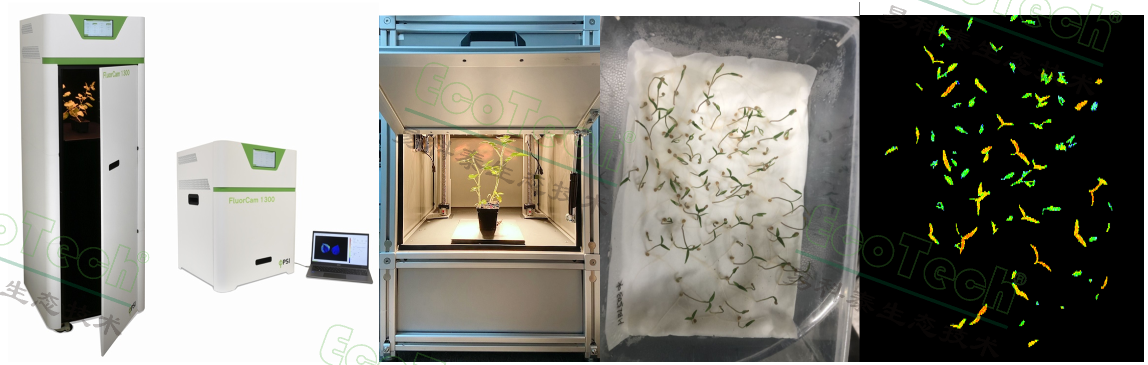 左圖:新一代FluorCam1300多激發(fā)光多光譜熒光成像系統(tǒng);中:FluorTron®植物光合表型成像分析系統(tǒng);右:利用易科泰葉綠素熒光成像技術(shù)測量番茄種子萌發(fā)率并評估種苗活力