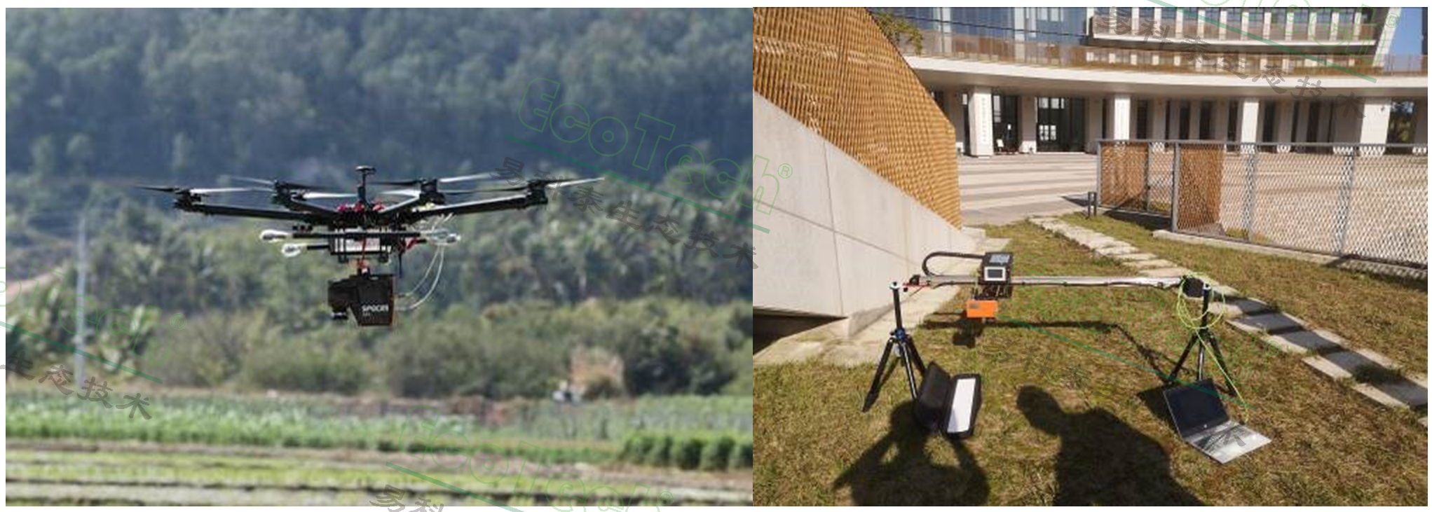 左圖:Ecodrone® UAS-8高光譜無人機遙感系統(tǒng),高性能推掃式高光譜成像技術,厘米級地面分辨率2cm@30m,可應用于大尺度土壤高光譜掃描分析;右圖:PhenoPlot輕便型移動掃描平臺,輕便、可折疊,高度80-180cm可調(diào),內(nèi)置溫濕度、光照度傳感器,可實現(xiàn)自動運行程序,適用于野外樣方土壤高光譜檢測