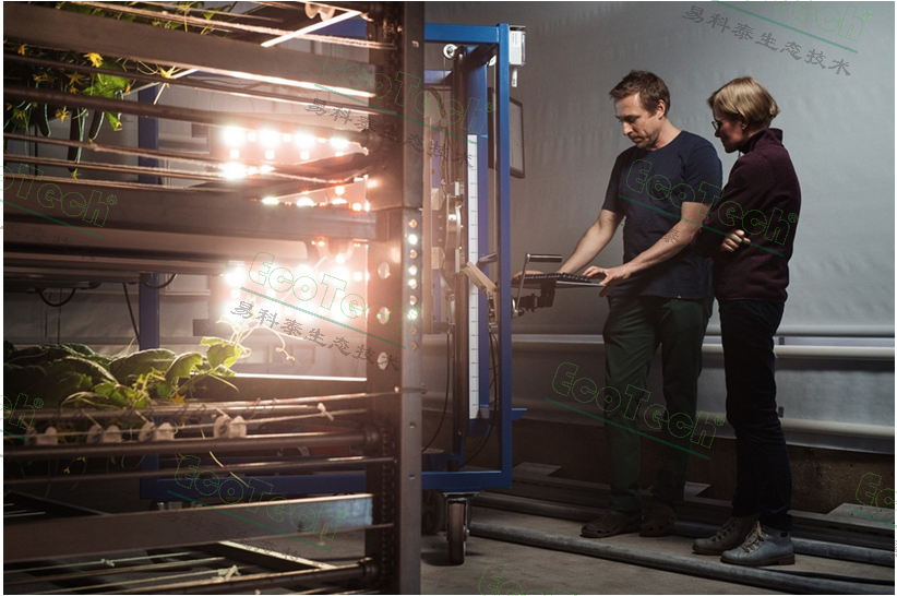 Luke的資深科學(xué)家正在進(jìn)行水平栽培黃瓜光合作用監(jiān)測(cè)的設(shè)置