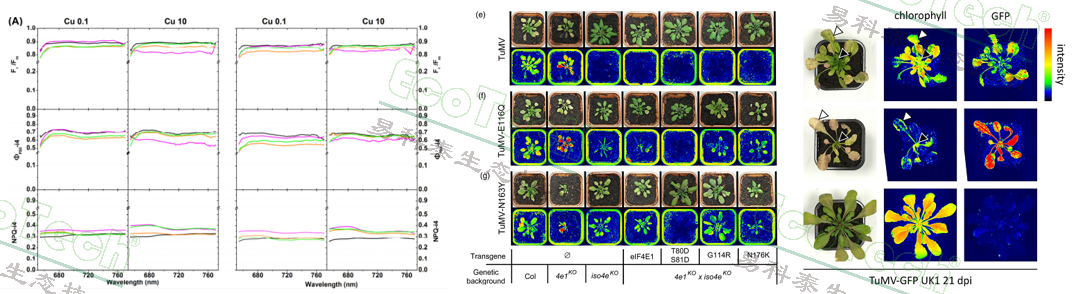 圖4. 銅毒性對(duì)植物葉肉細(xì)胞葉綠素?zé)晒鈪?shù)的影響及抗病毒基因研究:葉綠素?zé)晒獬上衽cGFP成像聯(lián)合分析