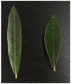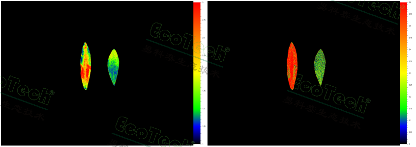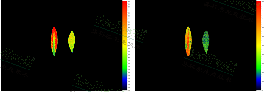RGB成像:油橄欖葉片,左:對照;右:遮蔭處理